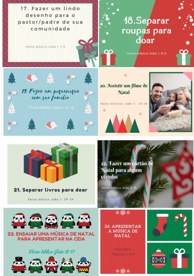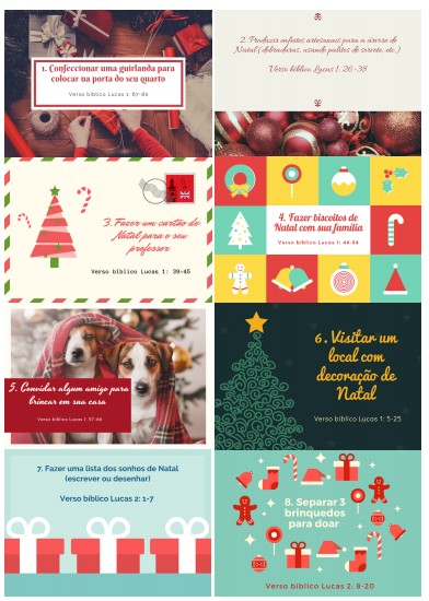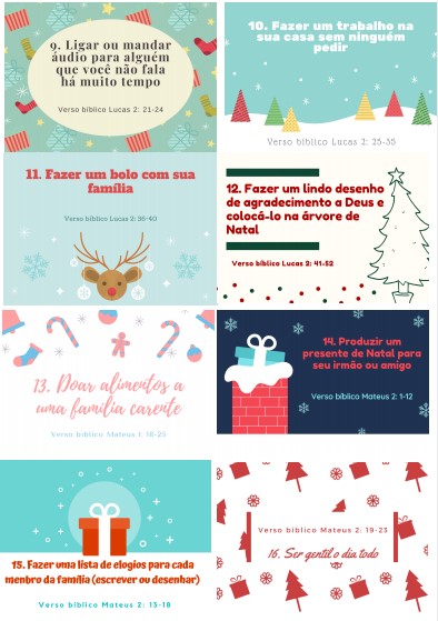 E como nosso presente para vocês, cartões prontinhos que é só imprimir e já tem todas as atividade para vocês. Cada um deles também acompanha a sugestão de um verso Bíblico para a verdadeira história do Natal seja contada.