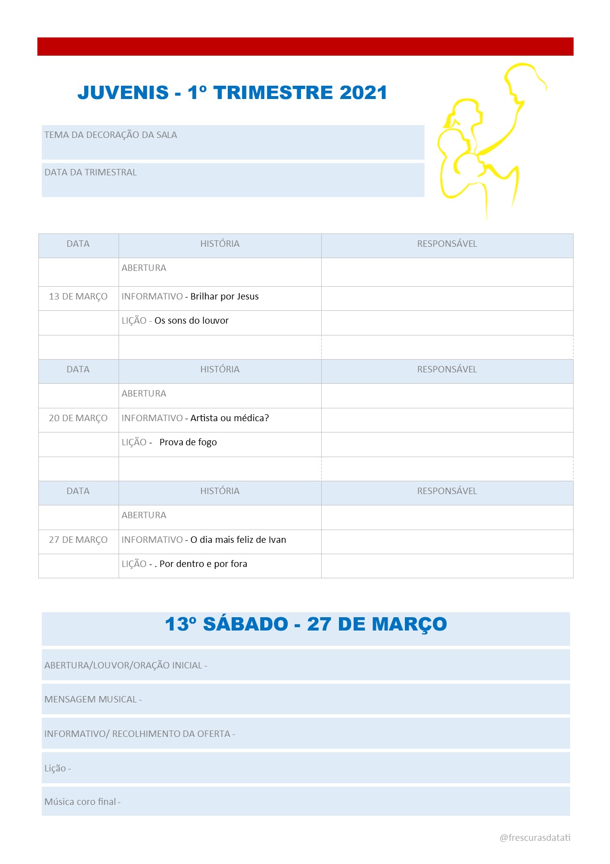 Certifique-se com sua equipe quem vai ficar responsável por cada coisa (Abertura/ Carta Missionária/ Lição)