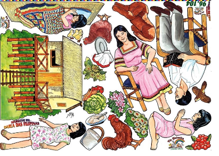 (Uma Criança entra com uma esteira) Darla dorme nesta esteira. Ela não tem cama fofinha, como vocês tem. Lá nas Filipinas, as pessoas dormem em esteiras finas no chão, como essa. Quando Darla acorda, a mamãe enrola a esteira e a encosta na parede da casa. Á noite, ela desenrola a esteira para Darla dormir.